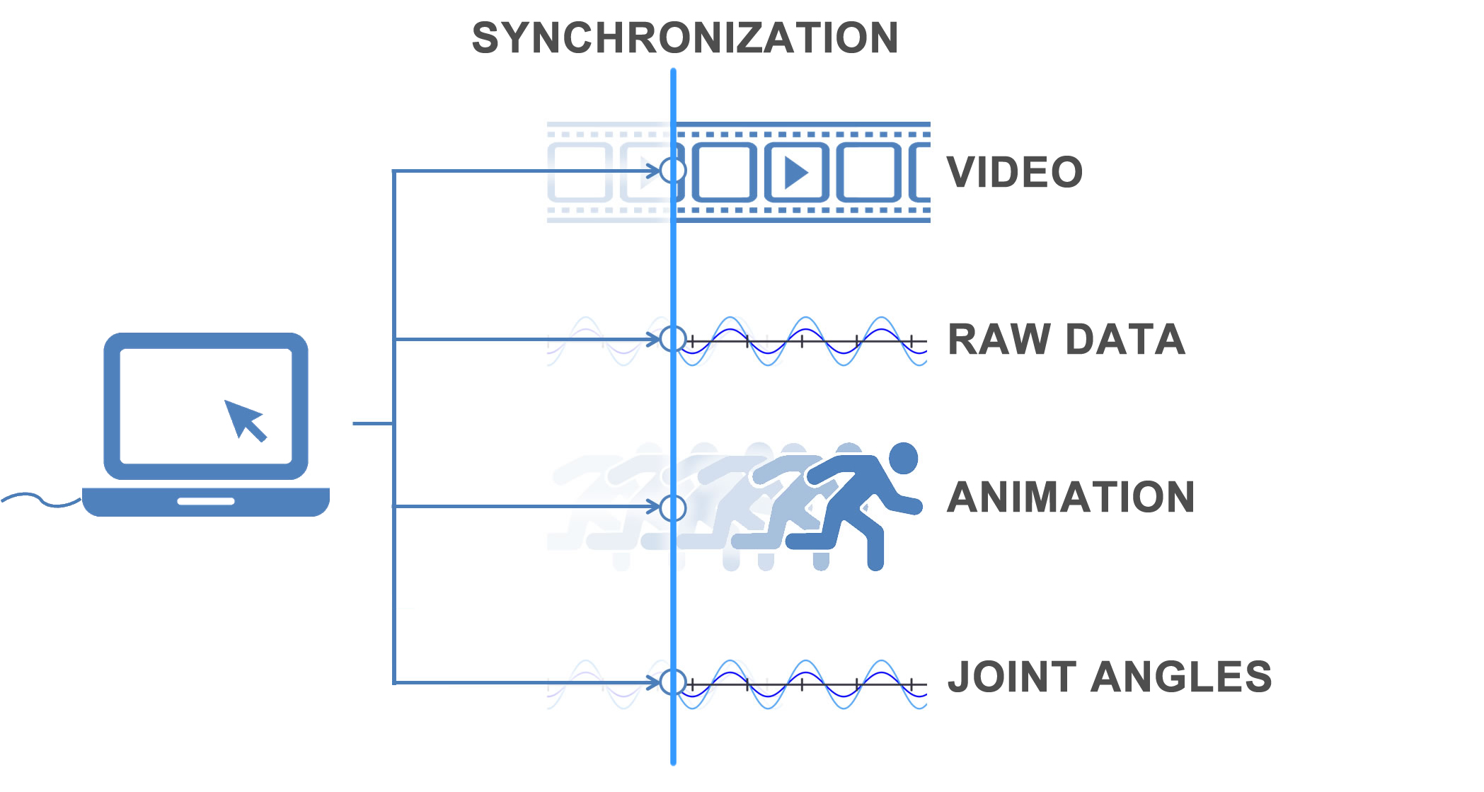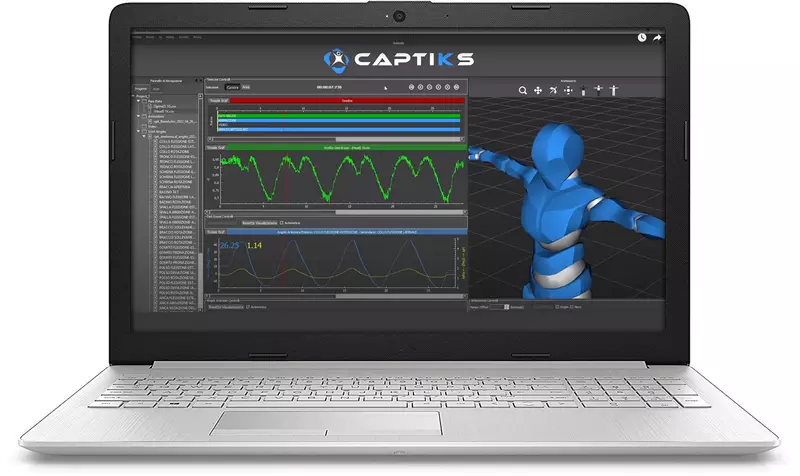 The system outputs raw data files, animation files, video files, and joint angle files. Each output can be selected or deselected. The raw data are the accelerometer, gyroscope, magnetometer, and quaternion values. The animation recorded is a standard BVH file. The video is a standard video file. The joint angles are saved in CSV format for easy import into Excel or other software. All information is synchronized with each other so as to be able to analyze the phenomenon from different points of observation